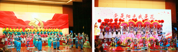 最后,环科城实验学校及亭湖区幼儿园师生们奉献的《党是阳光我是花》——迎“七一”文艺汇报演出,又一次把主题党日活动推向高潮。