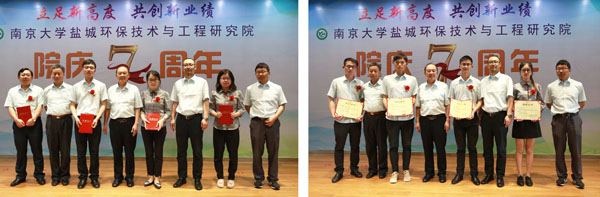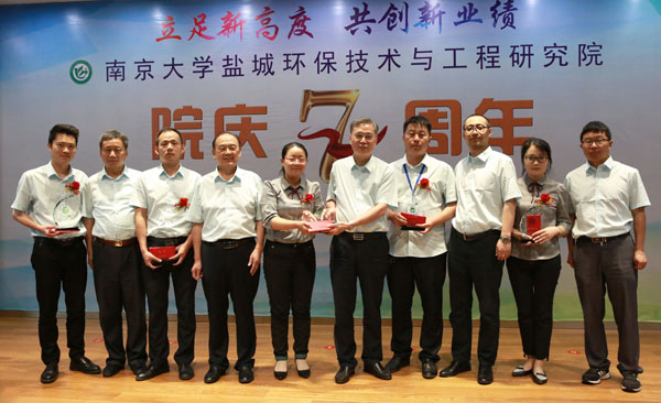 喜捧“敬业”杯,苦而无憾。2017年院务会议作出决定,每年给入职五周年工作与业绩突出的员工颁发“敬业”杯,倡导忠诚、坚守、奉献的院风。在第二届“敬业”杯颁奖仪式上,南大华兴副总经理史风华、水环所PI团队负责人卞为林、灌南中心主任杜虎、南大华兴研发部副部长赵选英、技术部部长助理潘兴华五位员工胸带红花带走上主席台,兴高采烈地从领导手中接过精美的奖杯,台下响起热烈的掌声。大家为忠诚喝彩,为坚守赞道,为奉献点赞。水环所卞为林高兴地说,走出上海交大的校门,加盟研究院五年,用辛劳与汗水赢得了领导与同事们的肯定,苦而无憾、累而无怨,因为认同是最高的奖赏。