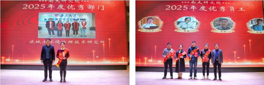 会议期间,院党总支副书记、院长助理王建成宣读了《关于表彰2025年度“先进集体”“优秀员工”的决定》,流域水环境治理技术研究所获2025年度先进集体,沈文天、张捷、张翔、陈捷获2025年度优秀员工。